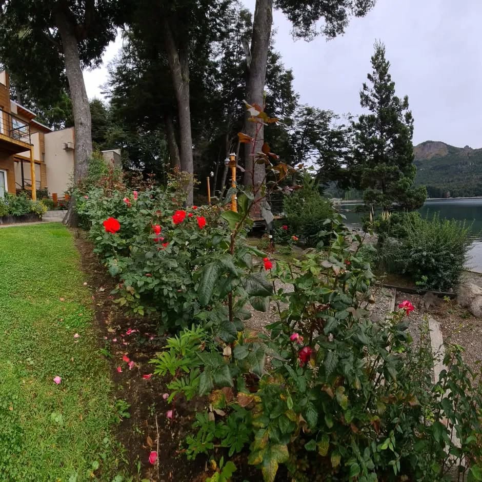 La costa posee una suave pendiente y permite un acceso directo al lago desde los jardines del Apart Hotel